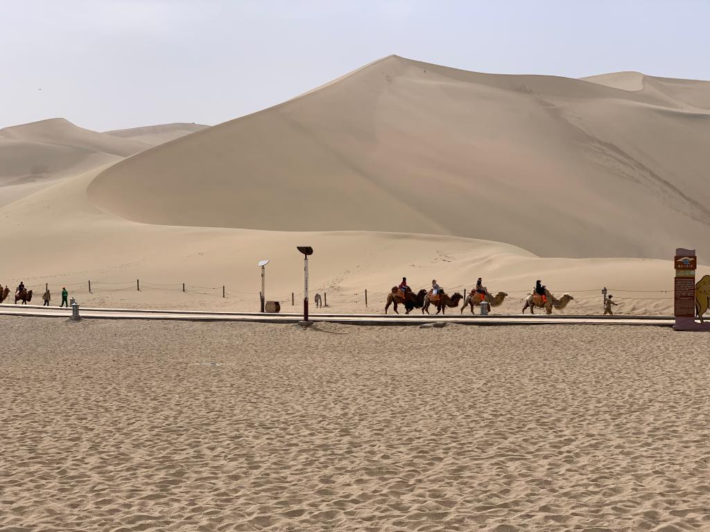 敦煌鸣沙山月牙泉景区内,游客骑着骆驼感受沙漠之美。新华社记者李杰摄 过去,甘肃交通缓慢、耗时长;如今,连霍高速等交通大动脉四通八达,让更多游客得以饱览甘肃的众多名胜奇观。 途经天水、兰州、武威、金昌、张掖、酒泉和嘉峪关的连霍高速甘肃段,与丝绸之路重合,与甘肃地形走向一致,不仅撑起了甘肃交通的“脊梁”,更是架起了西北旅游的“快速通道”。 从麦积山石窟到七彩丹霞,从莫高窟到嘉峪关关城,甘肃正逐步成为“丝路大景区”。交通提速的背后,是甘肃省文旅产业的腾飞。近年来,甘肃省旅游接待量和旅游综合收入连续多年保持20%以上增长。 兰州市红古区,兰州红旗物流有限公司仓储基地旁,一辆辆满载货物的大卡车正陆续驶离仓库,奔赴周边省市。这家企业主要负责甘肃、青海、新疆等西北省份货物运输,连霍高速是该企业新疆业务的重要通道。