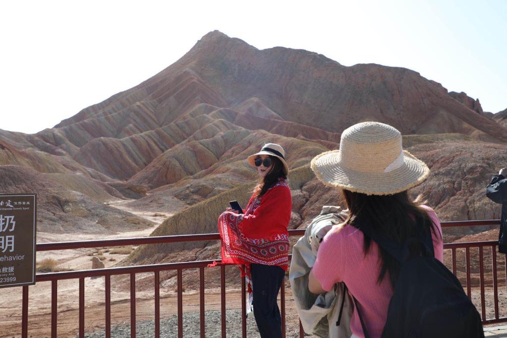 游客在张掖七彩丹霞景区拍照留念。新华社记者李杰摄 甘肃拥有的大漠、戈壁、雪山、湖泊、草原、花海等景观,是西北自然风光的充分诠释。张掖七彩丹霞、敦煌鸣沙山月牙泉、莫高窟、嘉峪关关城等丝路美景,也成为热门的旅游自驾打卡点和旅行团必推地。