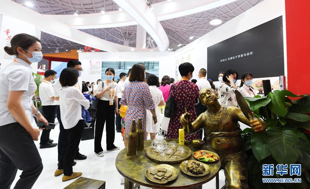 5月7日,参观者在海南国际会展中心各省市自治区展区重庆馆观看展览。 5月6日,首届中国国际消费品博览会在海南省海口市开幕。该博览会由商务部和海南省人民政府共同举办,展览总面积8万平方米,国内外参展企业近1500家,来自约70个国家和地区。 新华社记者 杨冠宇 摄